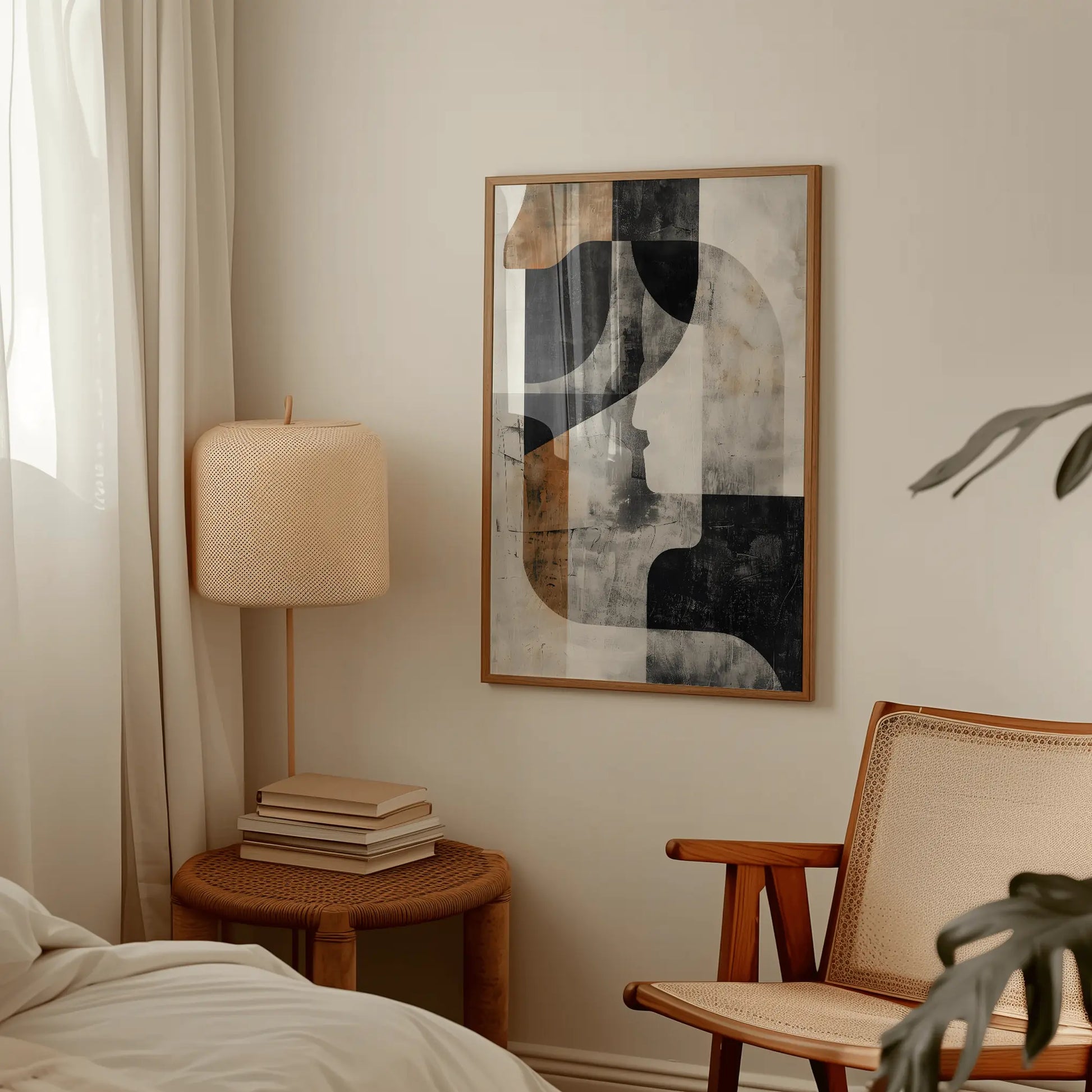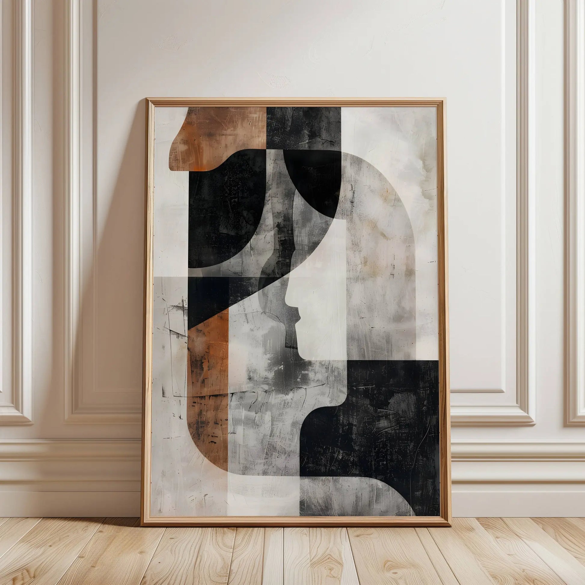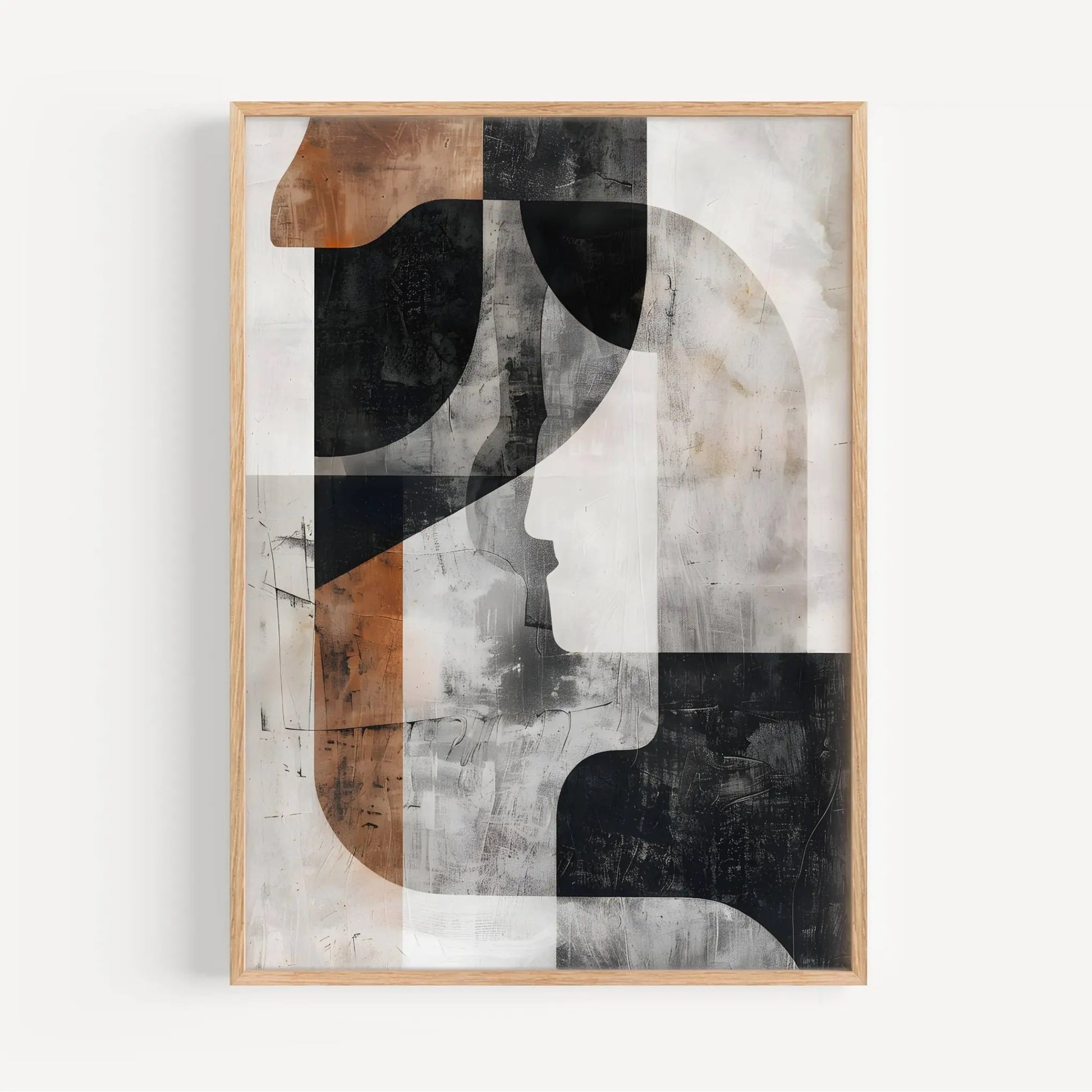 Lámina abstracta de figuras geométricas en colores grises, negros, marrones y blancos. Ideal para interiores modernos o industriales.