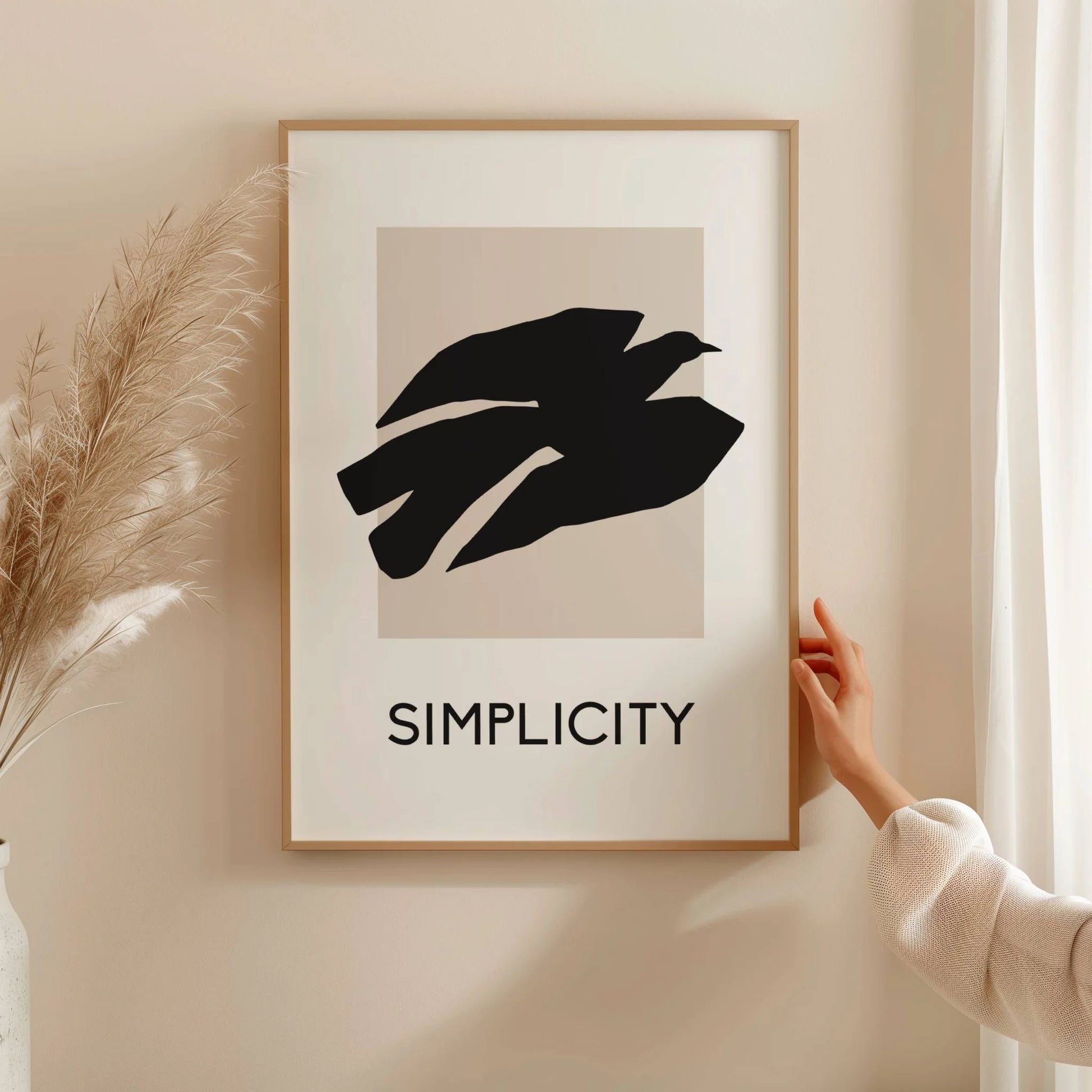 Lámina decorativa con silueta de pájaro en negro sobre fondo beige. Diseño minimalista con estilo bohemio que añade elegancia a cualquier espacio.